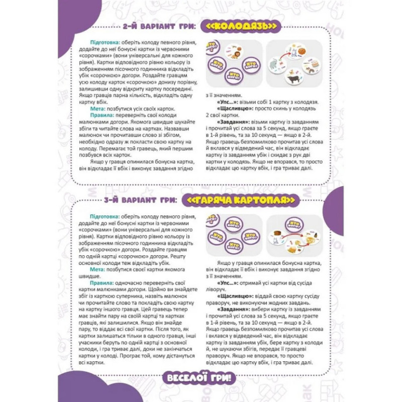 У цій серії поєднано улюблений "Добль" із навчальною грою. Гравці мають не лише шукати однакові зображення, а й пари "слово - малюнок", "приклад - відповідь".
