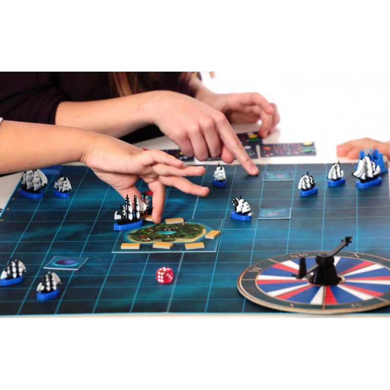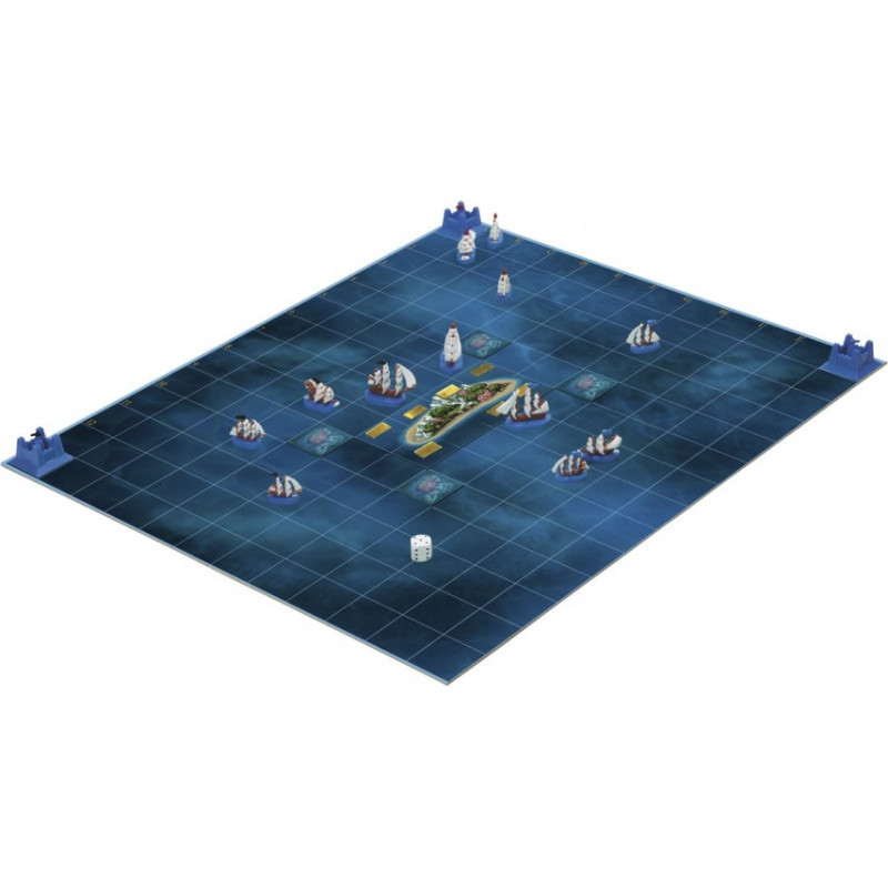 Комплектація: 12 моделей кораблів з магнітними картками, ігрове поле, накладні елементи карти, кубик, флюгер, правила гри