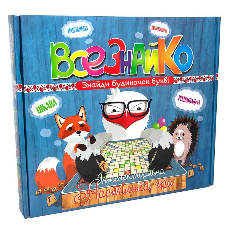 Набір включає ігрове поле з високоякісного щільного картону у вигляді пазлу з 4 частин, дерев’яних фішок з літерами в сумці та інструкція з детальними правилами гри. Суть гри полягає в тому, щоб скласти слова з центру ігрового поля горизонтально або вертикально. Слова повинні перетинатися за принципом кросвордів, тобто мати мінімум одну або кілька спільних букв. За складені слова гравцям присуджуються бали. Крім того, кожна фішка з буквою має певне значення. Це також потрібно враховувати, щоб набрати максимальну кількість балів.