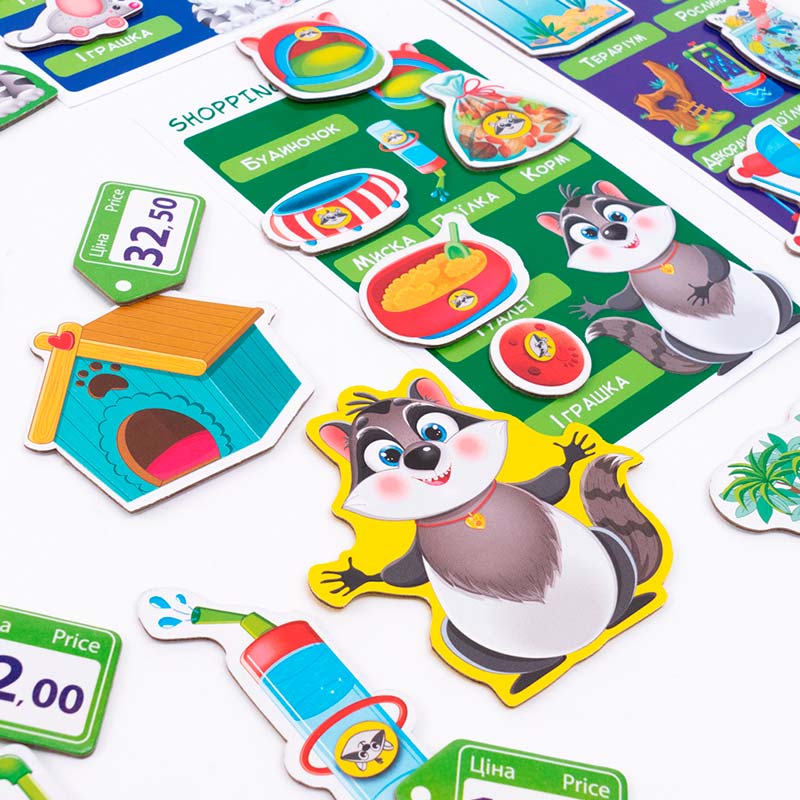 Домашні улюбленці такі різні! Усім їм потрібні турбота та увага. Вирушай до зоомагазину й купи для свого улюбленця все необхідне! Під час гри також учися розпоряджатися своїми фінансами, рахувати гроші та видавати решту. Клич друзів і збирайте атрибути для своїх тваринок наввипередки!