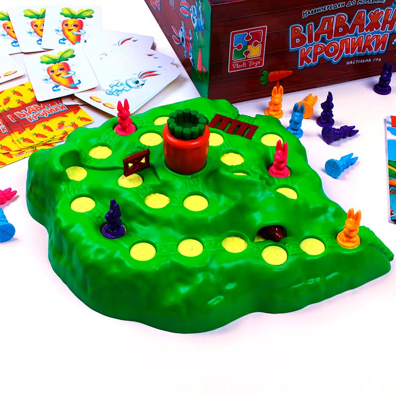 Відважні кролики запрошують до себе! Весела та динамічна настільна гра для дітей подарує незабутні емоції.