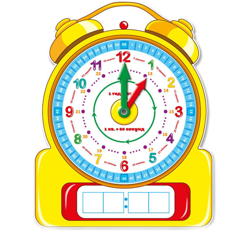 Навик дітей розуміти час дає їм можливість бути більш відповідальними і незалежними. Навчальний тренажер годинник в комплекті має практичні поради, які допоможуть дорослим пояснити дитині, як користуватися реальним годинах.