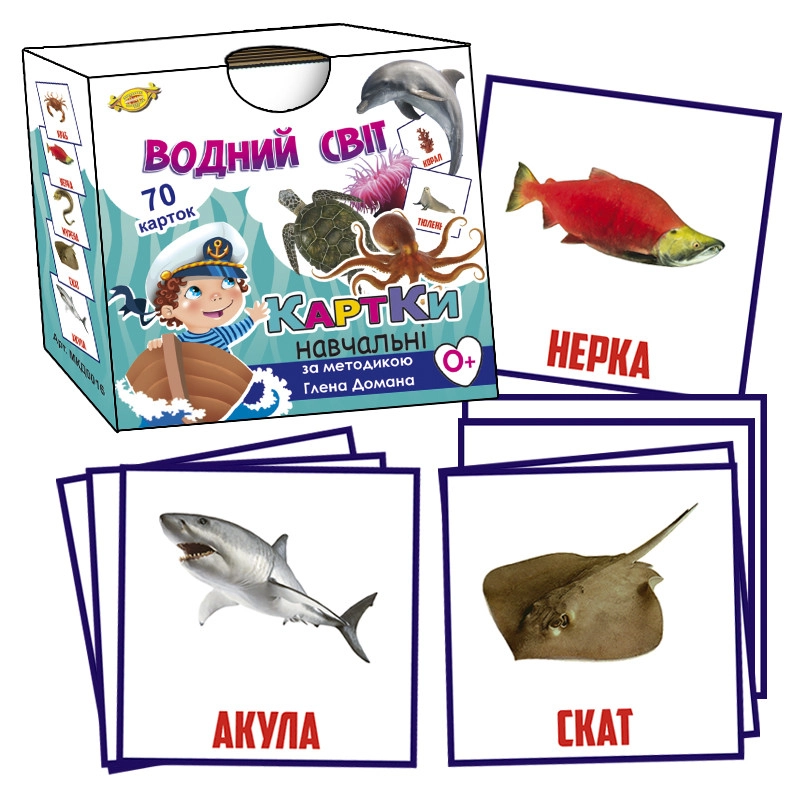 Тематичний набір "ВОДНИЙ СВІТ" популярних карток за методикою Гленна Домана (українською мовою).