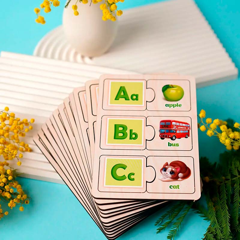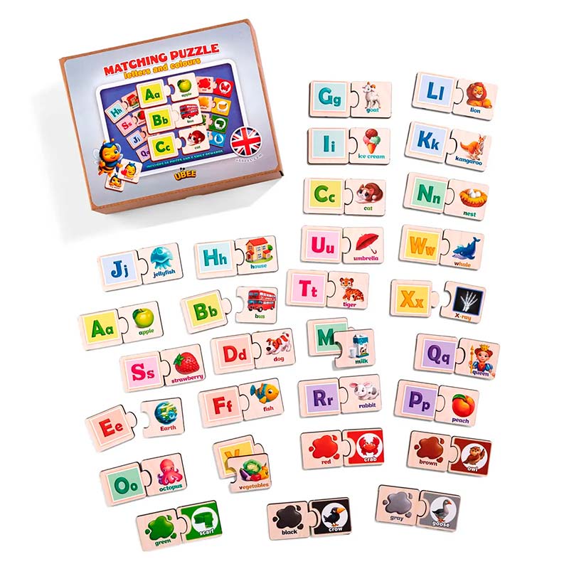 У наборі 33 пари пазлів (26 - алфавіт, 7 - вивчення кольорів)