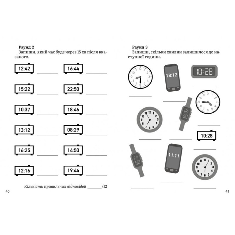 натренуватися правильно визначати час за механічними та електронними годинниками у 12- та 24-годинному форматі;