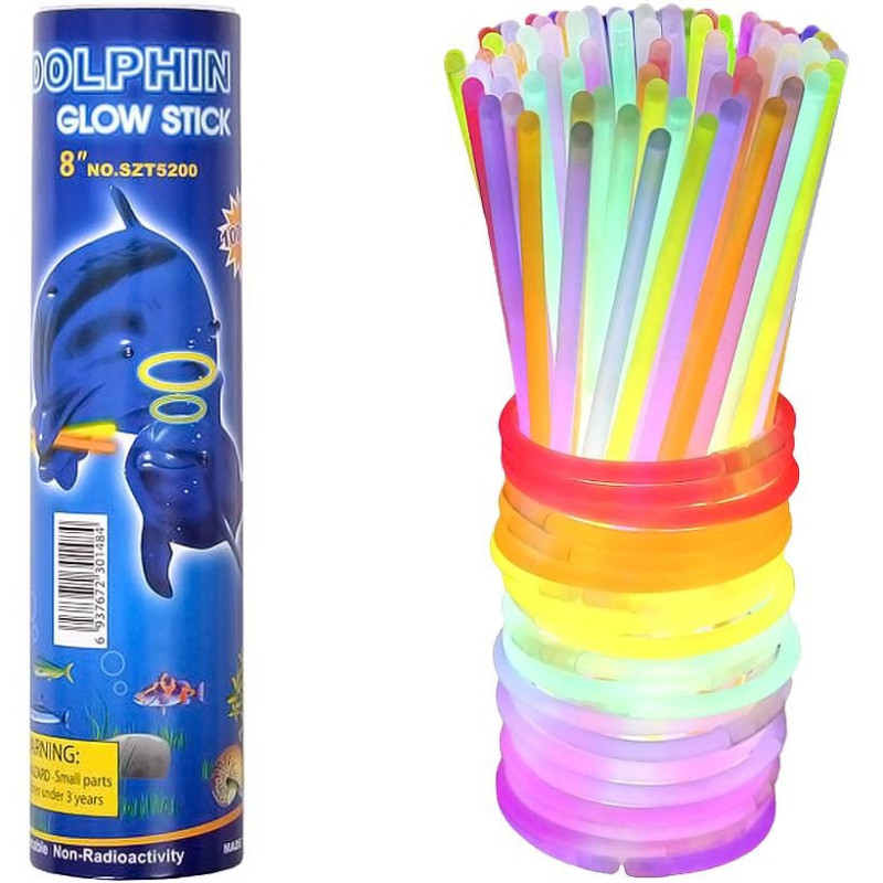 Неонові браслети, що світяться, довжиною 20 см, в тубі на 100 штук. Використовуються для організації різноманітних заходів: клубних вечірок, концертів, корпоративів, дитячих свят та днів народження. З декількох браслетів можна створювати фігури та інсталяції. Вони також можуть використовуватися в рекламних акціях для привертання уваги. Ці хімічні джерела світла забезпечують освітлення на 360° в будь-яких погодних умовах, не містять токсичних речовин, не виділяють тепло, водонепроникні. Світяться від 6 до 8 годин. Упаковка включає 100 браслетів та 100 конекторів для з'єднання. Кольори: жовтий, зелений, червоний, синій, помаранчевий, асорті. Призначені для використання дітьми від 3 років.