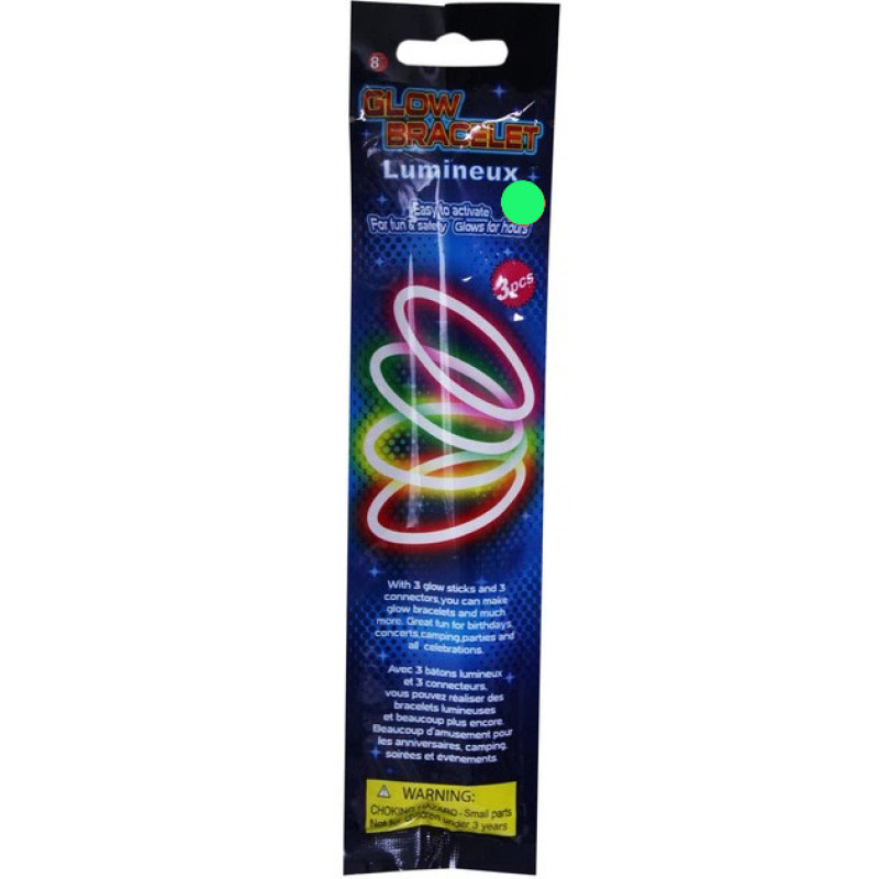 Неоновий браслет-світяшка буде чудовим аксесуаром на свята. Щоб створити брасет-світятку, потрібно витягти з упаковки неонову паличку, зігнути її навпіл, потрясти і з'єднати обидва кінці за допомогою сполучних елементів. Браслет світитиметься 5-6 годин.