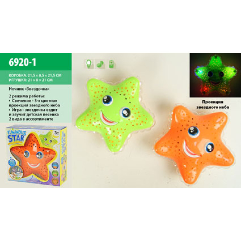 Нічник 6920-1 зірочка-проектор зоряного неба батар.світло.кор.22*8,5*21 ш.к./48/