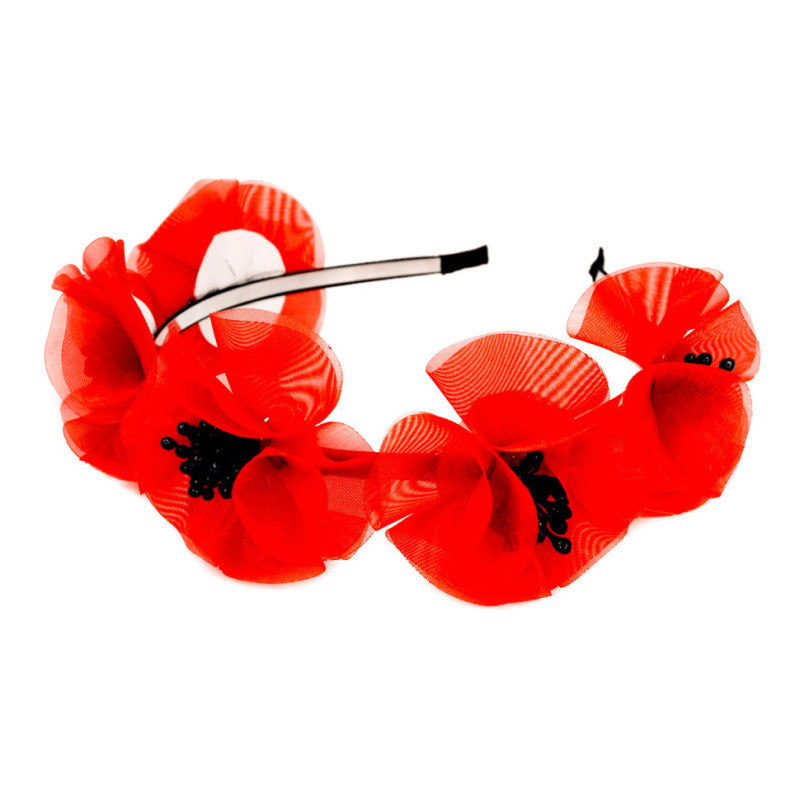 Ободок для волосся з об'ємним червоним маком 0206-761