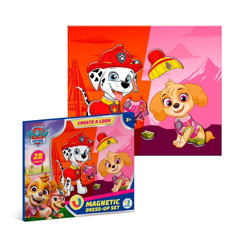 Ця магнітна гра поєднує у собі творчість, розвагу та розвиток: яскрава магнітна дошка і 28 магнітних елементів дозволяють дитині комбінувати одяг, аксесуари та створювати стильні образи для героїв Marshall та Skye з популярного мультсеріалу Paw Patrol.