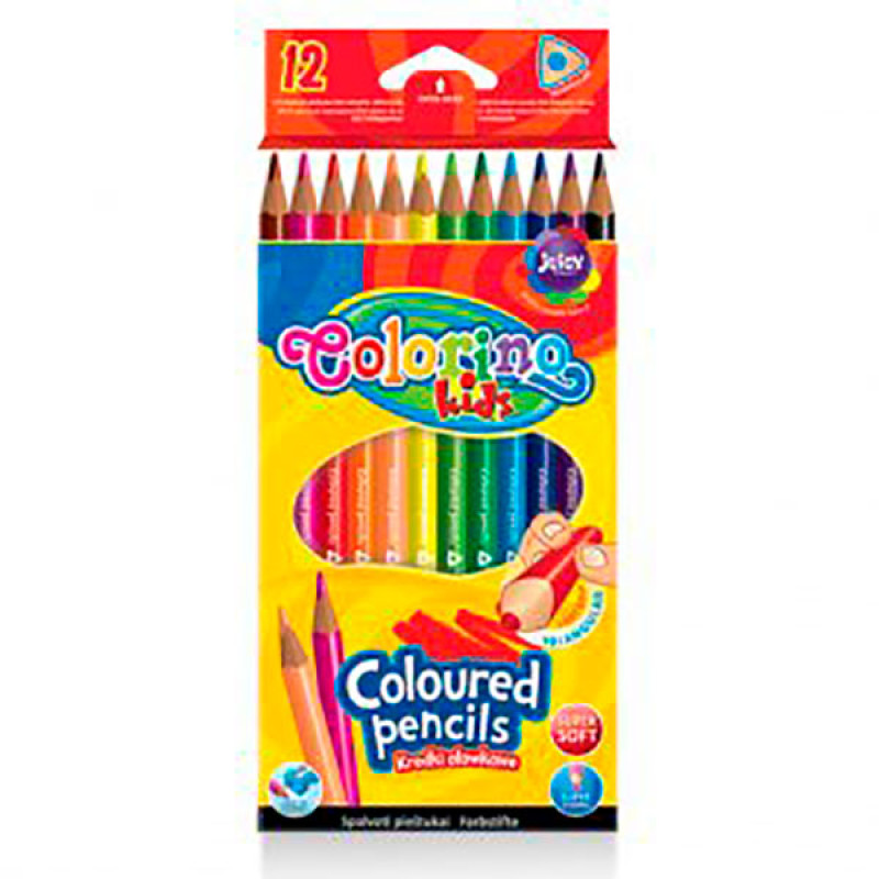 Олівці кольорові трикутні 12 кол. чинка золото срібло COLORINO 54706PTR