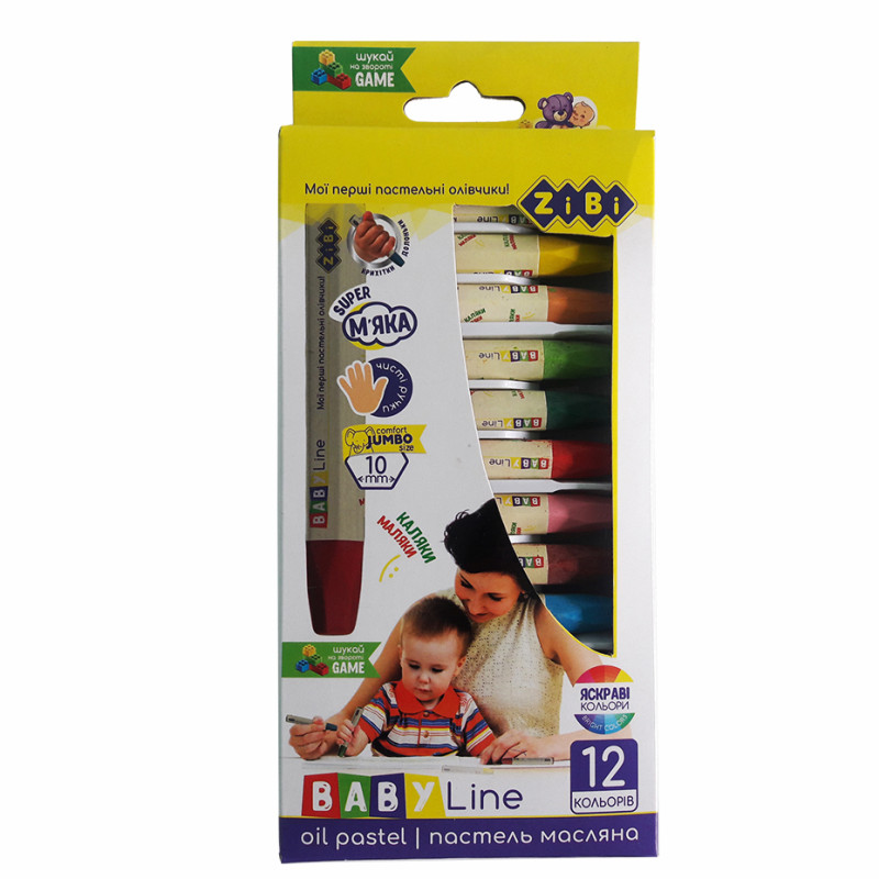 Пастель олійна має насичені кольори. Набір складається з 12 заточених пастельних олівців на олійній основі. Корпус потовщений. Грифель підвищеної м'якості - легко лягають і розфарбовують. Лягають непрозорим шаром. Виразні яскраві кольори - багато кольорових пігментів. Корпус - у яскравій паперовій обгортці. Не кришаться, не тріскаються при коректному використанні. Вимагають мінімальної сили натиску. Картонна упаковка з пластиковим піддоном з окремими секціями-роздільниками для кожного олівця.