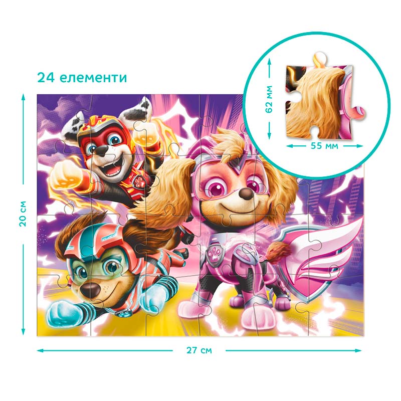Пазл Dodo "Paw Patrol: Зберігаємо світ у безпеці" — це захопливий набір, який складається з двох пазлів: один на 24 елементи, а інший на 36 елементів. На яскравих ілюстраціях зображені улюблені герої — щенята з команди Paw Patrol, які готові до нових пригод та місій по рятуванню. Вони завжди готові прийти на допомогу і захистити світ від небезпек!
