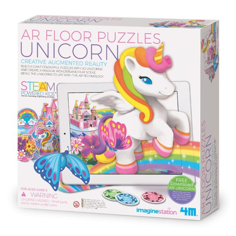 Оживіть казкових єдинорогів за допомогою технології AR. Приєднуйтесь до них для дивовижних пригод у країні чудес!Пазл з 3d доповненою реальністю Єдиноріг 4M дозволяє зняти ролик із фантастичними тваринками! Для початку необхідно скласти великий пазл із зображенням сцени для зйомок.Тепер настає найцікавіший момент. Завантажте безкоштовний додаток в Google Play або App Store, наведіть камеру гаджета на пазл-килимок, підставте фігурки #8211; і ви побачите живих єдинорогів! Робіть фотографії та знімайте відеоролики #8211; здивуєте своїх друзів.Набір із серії AR Floor Puzzle допоможе дітям 3-5 років весело провести час, розкрити уяву, дізнатися більше про сучасні цифрові технології.