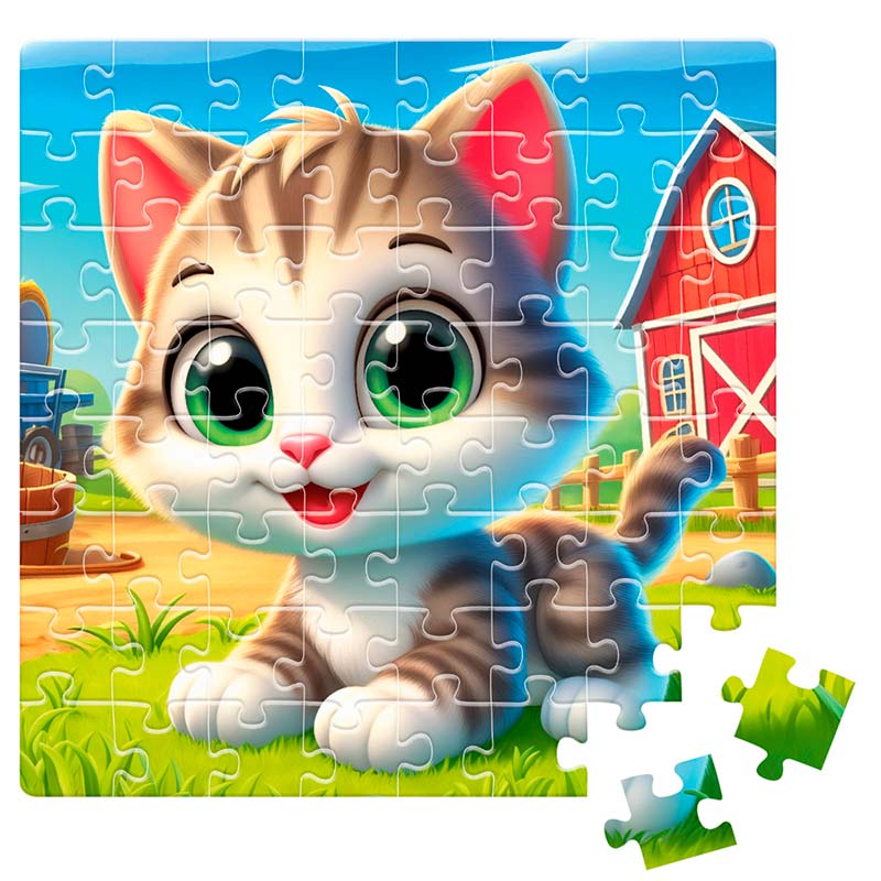 Оригінальний і захопливий пазл з милим кошеням, що дарує приємні хвилини творчості та відпочинку. Барвисте зображення та зручні елементи роблять збірку інтуїтивною і приємною для всіх учасників.