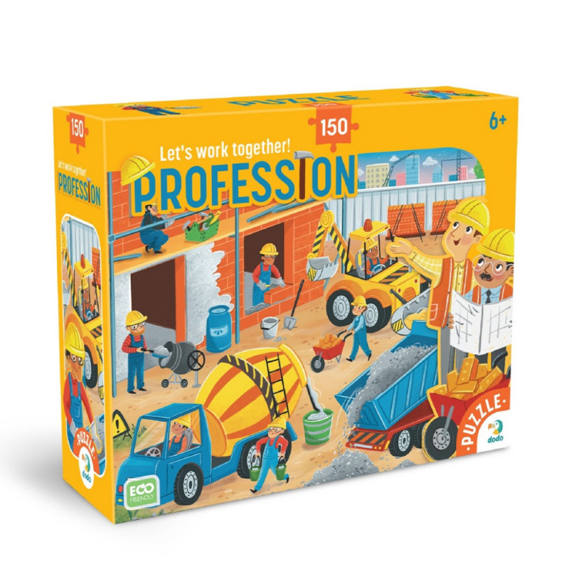 Пазл Dodo "Професії: Будівельник" — це яскравий та захоплюючий пазл, що складається зі 150 елементів і ідеально підходить для дітлахів від 6 років. На зображенні показаний будівельний майданчик, де працьовиті будівельники виконують свої важливі завдання.