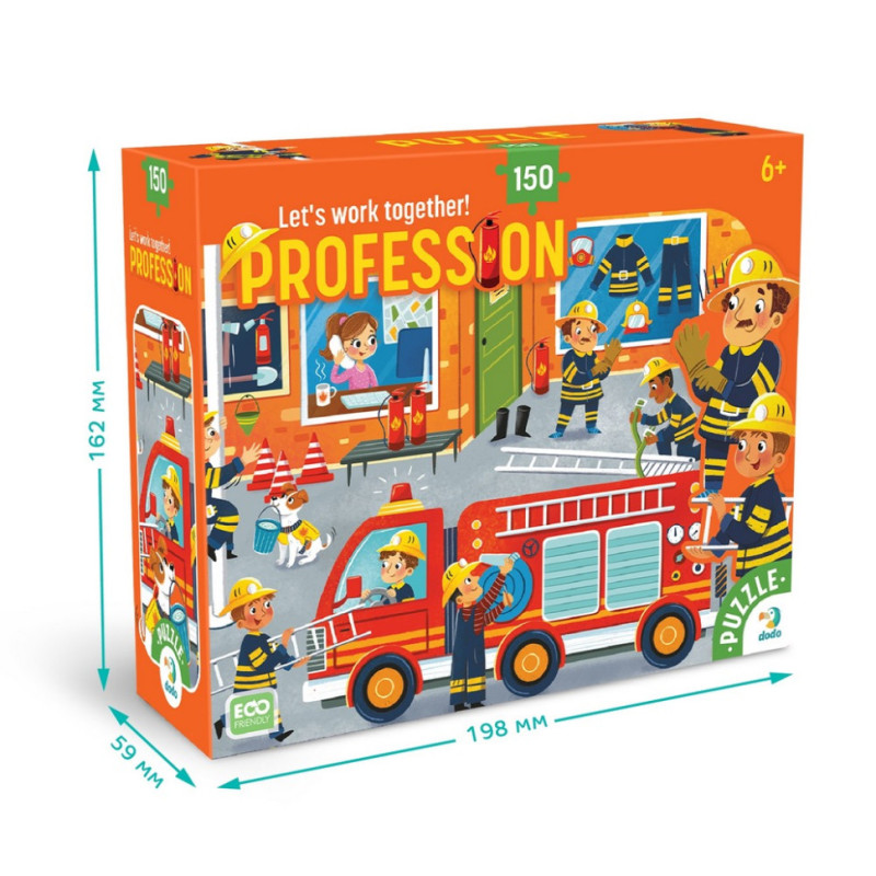 Пазл Dodo "Професії: Пожежник" складається зі 150 елементів і перенесе вашу дитину у світ сміливих рятувальників. На яскравій ілюстрації зображено пожежну станцію, де відважні пожежники готуються до чергового виклику. Вони перевіряють обладнання, ладнають пожежну машину та готуються до виконання своєї важливої місії — рятувати життя.