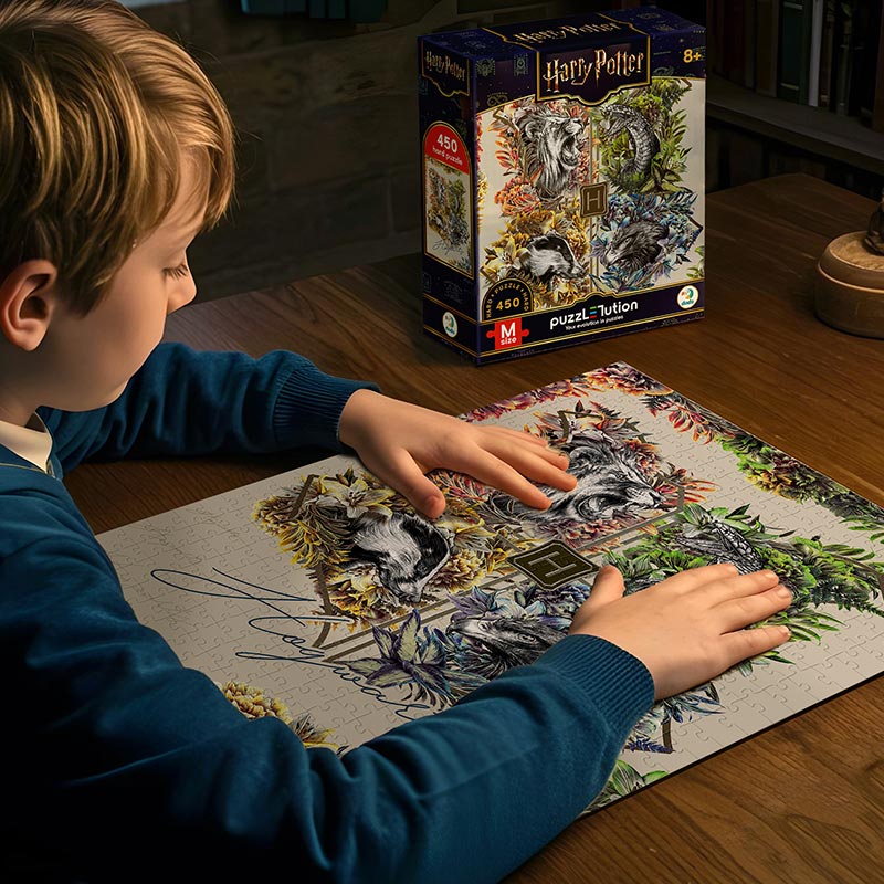 Зануртесь у чарівну атмосферу школи магії, зібравши барвисту картину, яка поєднує символіку всіх факультетів. Цей пазл стане захопливим проєктом для фанатів та тих, хто любить деталізовані ілюстрації.