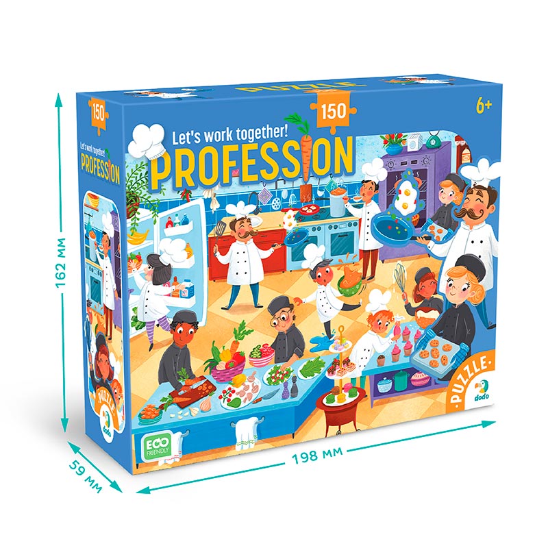 Пазл Dodo "Професії: Повар" складається зі 150 елементів і перенесе вашу дитину у світ кулінарії та захопливого приготування їжі. На яскравій ілюстрації зображена кухня, де працюють веселі кухарі, готуючи різноманітні страви. Тут кипить справжнє кулінарне життя: хтось готує суп, інший випікає печиво, а хтось вже сервірує готові страви.