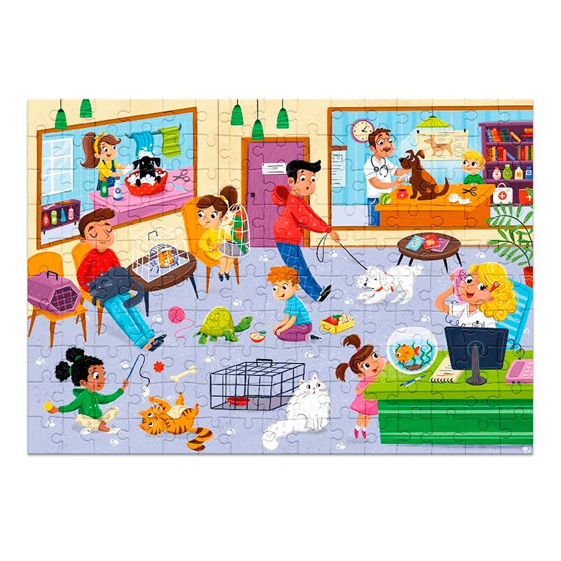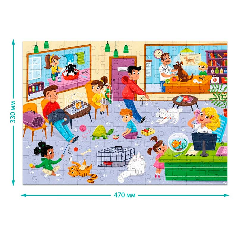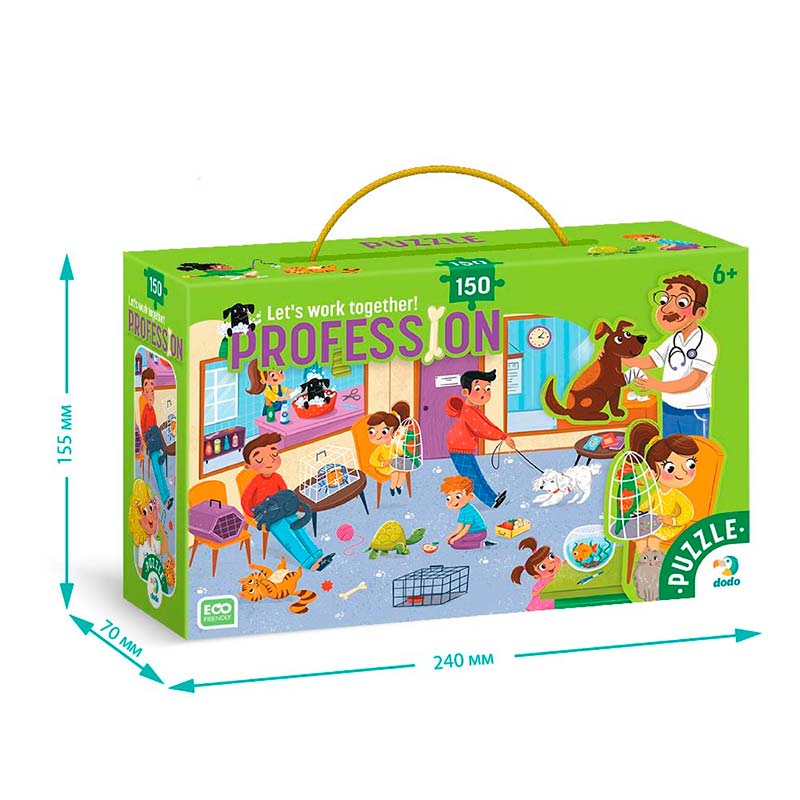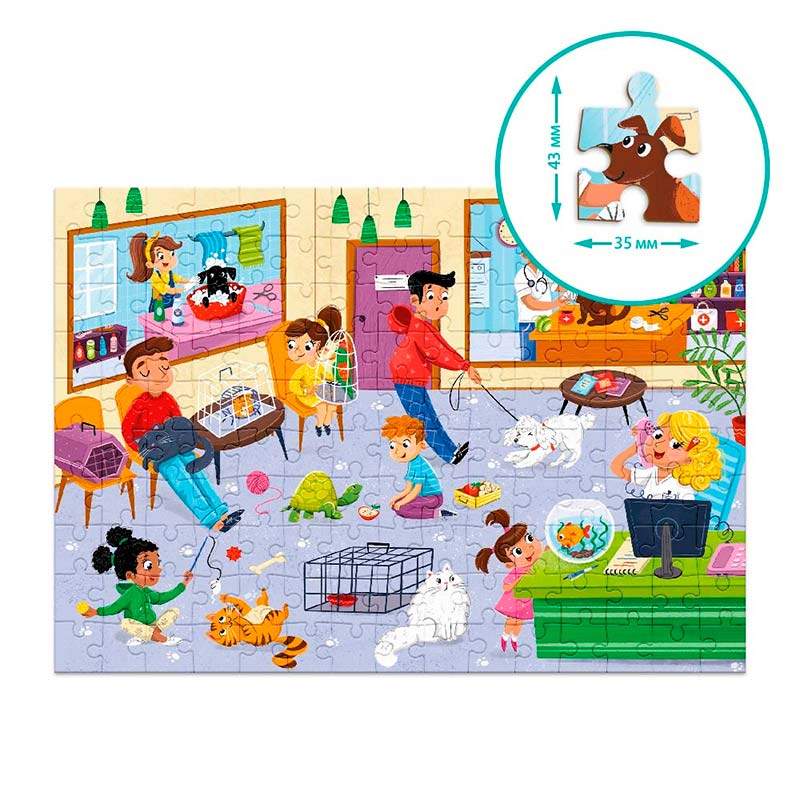 Цей пазл — чудовий спосіб розвинути дрібну моторику, логічне мислення та уважність вашої дитини. В процесі складання пазлу дитина дізнається більше про професію ветеринара та побачить, як відбувається лікування тварин.
