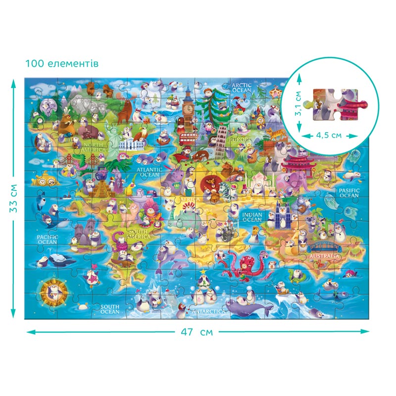 Захоплюючий ілюстрований світ, в якому мешкають кумедні пінгвіни, айсберги та морські пригоди. Цей пазл створений, щоб подарувати спокійні та водночас цікаві хвилини для дітей і дорослих, пробуджуючи інтерес до природи й дрібної моторики.