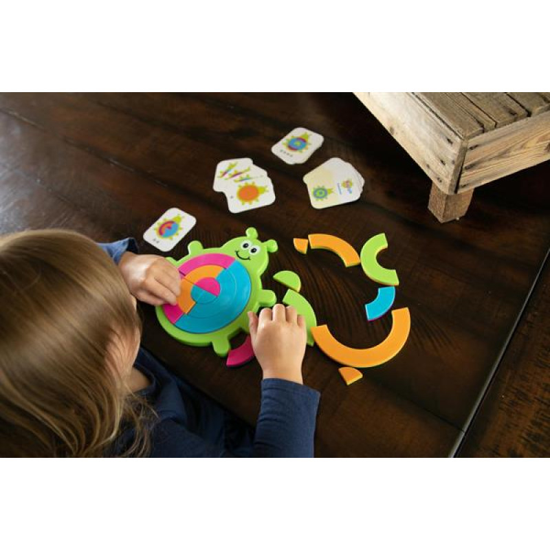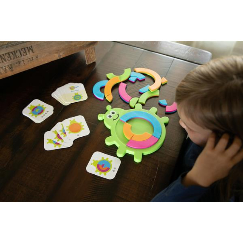 Bugzzle #8211; це незвичайний і барвистий розвиваючий пазл-головоломка.Думаєте, все так просто? Спробуйте виконати всі завдання!Що входить у набір: 18 двоколірних частин пазлу, рамка у вигляді жука, 40 карток із завданнями.За допомогою цього пазлу ви можете пояснити дитині такі поняття: 'половина цілого' і 'чверть цілого'. Ця розвиваюча гра сподобається хлопчикам і дівчаткам віком від 3-х років. Розмір іграшки: 24 х 6,4 х 24 см.Безпека і сертифікація: пазл Bugzzle виготовлений з міцного АБС-пластику і не містить БФА. Іграшка відповідає вимогам сертифікатів EN 71 (1, 2, 3), стандартам SOR, ASTM F963, вимогам комісії AFPS GS, директивам ЄС.
