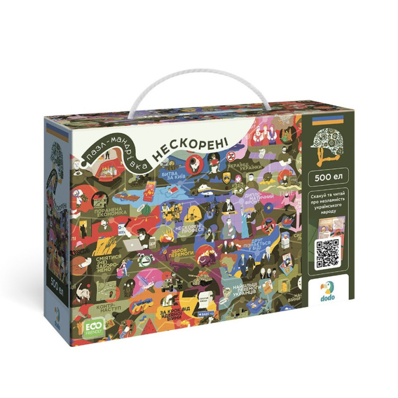Пазл Dodo "Нескорені" — це особливий пазл на 500 елементів, створений у співпраці з творцями Книги-мандрівки "Нескорені". Цей пазл є унікальним доповненням до книги, яке дозволяє не лише насолодитися складанням, а й глибше зануритися в історію України.