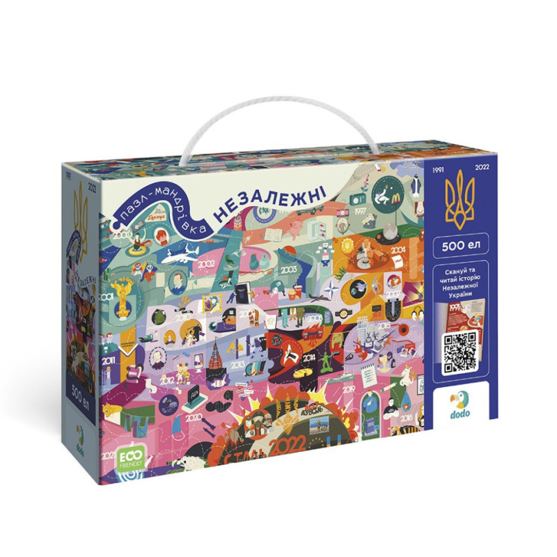 Пазл Dodo "Незалежні" — це унікальний пазл на 500 елементів, розроблений у співпраці з творцями Книги-мандрівки "Незалежні". Цей пазл є унікальним доповненням до книги, яке дозволяє глибше зрозуміти історію сучасної України.
