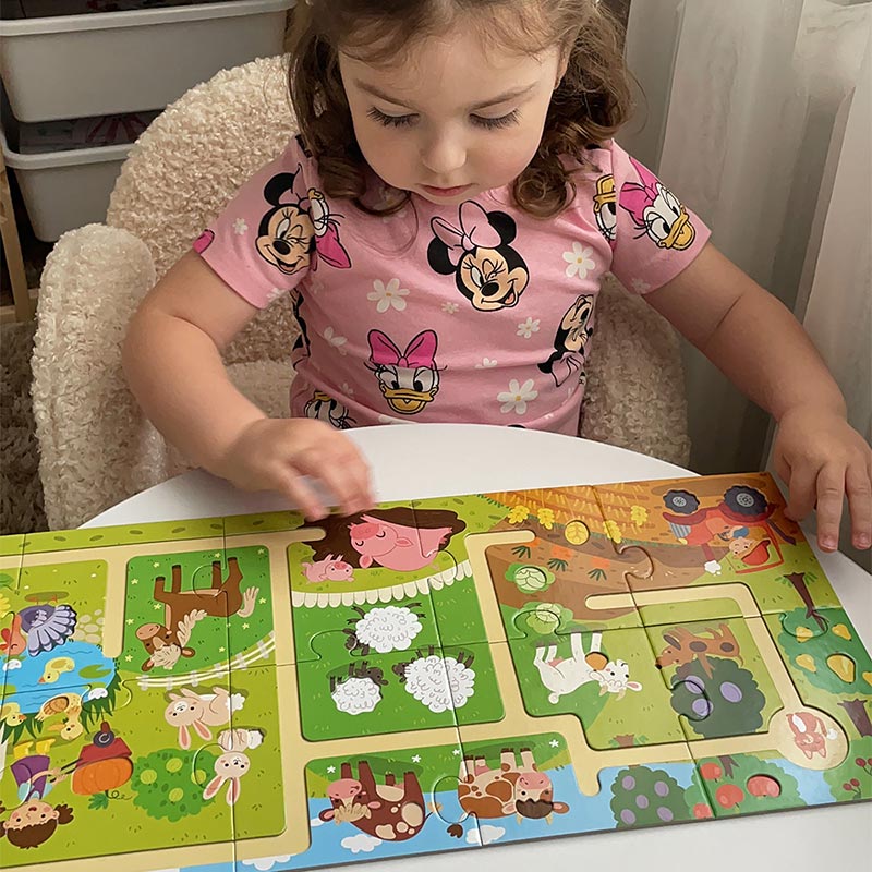 Пізнавальна та весела гра, яка поєднує складання пазла із захопливим проходженням лабіринту. Яскраві ілюстрації фермерського життя запрошують дитину у подорож серед тваринок і полів, де кожен крок відкриває нові сюжети та можливості для гри.