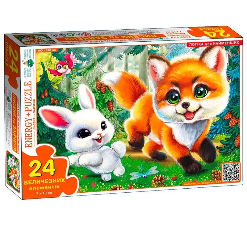 Чарівний пазл із ніжною ілюстрацією лисеняти та зайченяти запрошує в світ дружби та маленьких пригод. Кожна деталь створена так, щоб захопити увагу дитини та подарувати радість від складання.