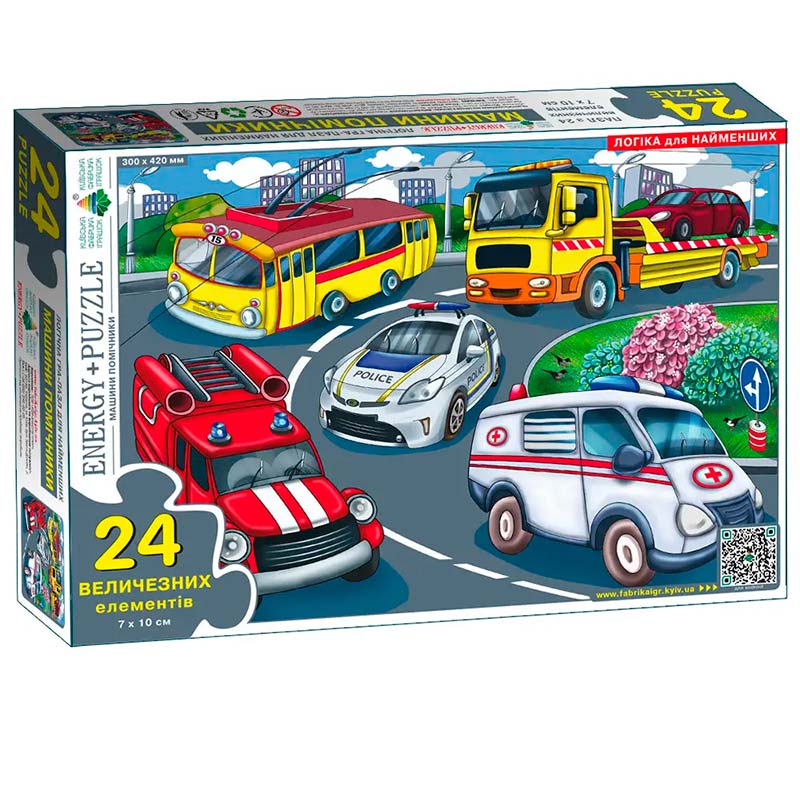 Яскравий та захопливий пазл, який переносить дитину у світ корисної техніки — пожежні машини, швидка допомога, будівельна техніка та інші помічники в дії. Ілюстрації виконані у приємних кольорах і підкреслюють динаміку сюжету, що заохочує до гри та фантазії.