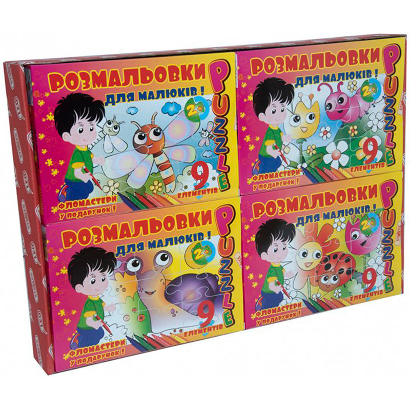 Пазл-розмальовка 9 елементів MAXI "Веселі комашки" 8 шт в блоці 12 блоків 35