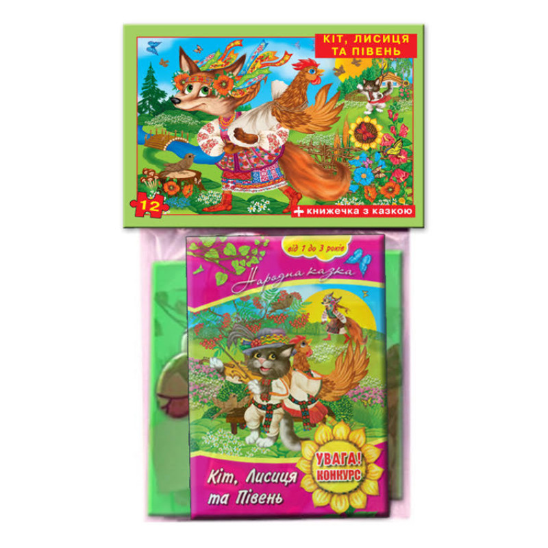 Пазли 12 елементів + ??казка "Кіт, Лисиця та Півник" укр у пакеті