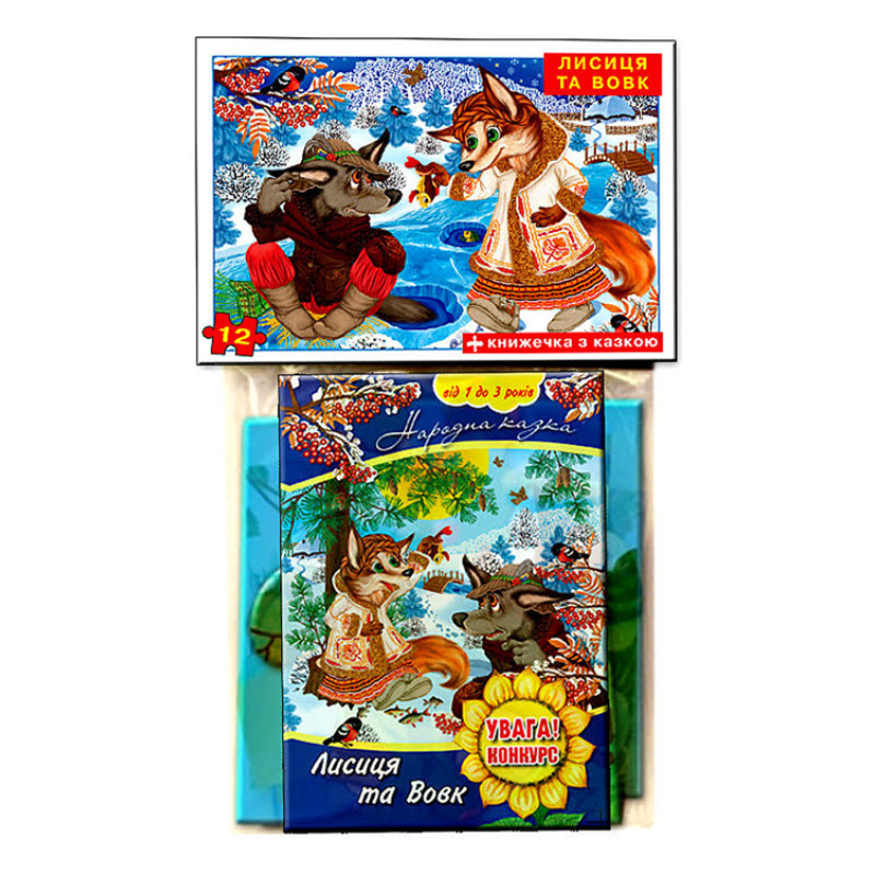 Пазли 12 елементів + казка "Лисиця та Вовк" укр у пакеті