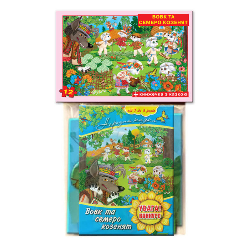 Пазли 12 елементів + казка "Вовк та семеро козенят" укр у пакеті
