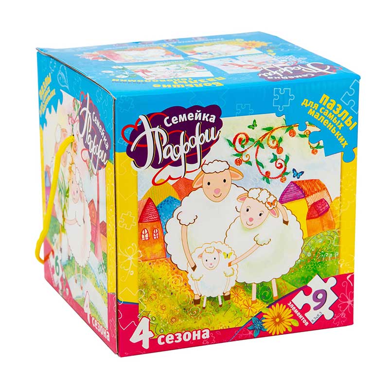 Забавні овечки Паффі чекають малюків для подорожі за порами року! У наборі чотири пазла різного ступеня складності - від 2х2 до 4х3, розміри елементів - від 12.5 до 6.2 см. Такі пазли підходять для самих маленьких діток, їх можна збирати, починаючи з двох років. Якісний матеріал збереже картинки навіть після багаторазового збирання. Дане розвага всебічно розвиває дитину, покращує пам'ять, логіку, уважність, посидючість і просторову орієнтацію.