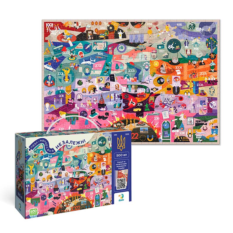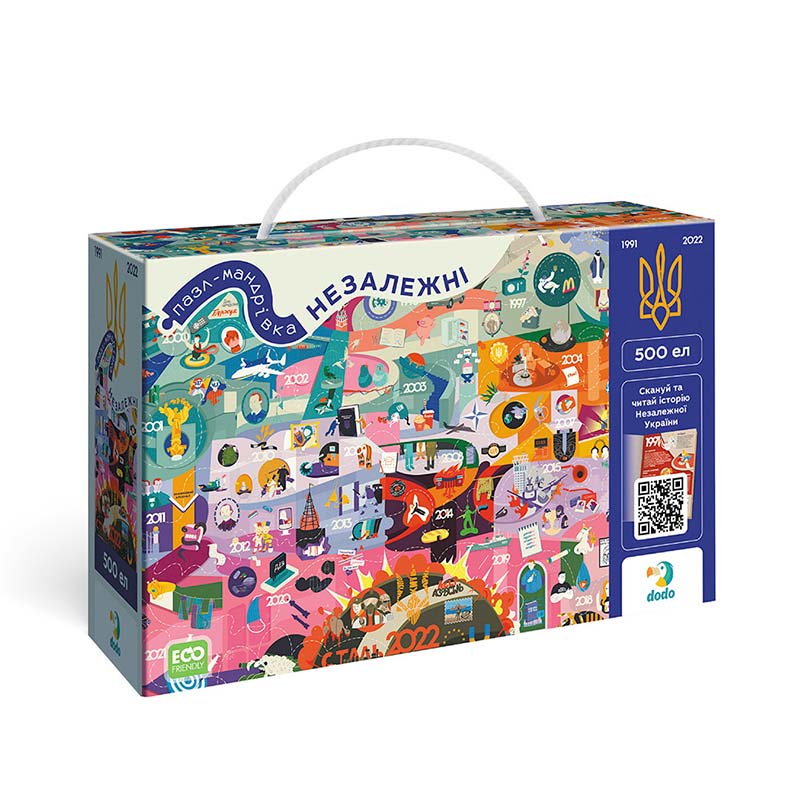 Пазл Dodo "Незалежні" — це унікальний пазл на 500 елементів, розроблений у співпраці з творцями Книги-мандрівки "Незалежні". Цей пазл є унікальним доповненням до книги, яке дозволяє глибше зрозуміти історію сучасної України.