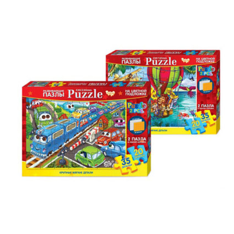 Пазли 2 в 1 м'які асорті складаються з 20 і 35 елементів у коробці.