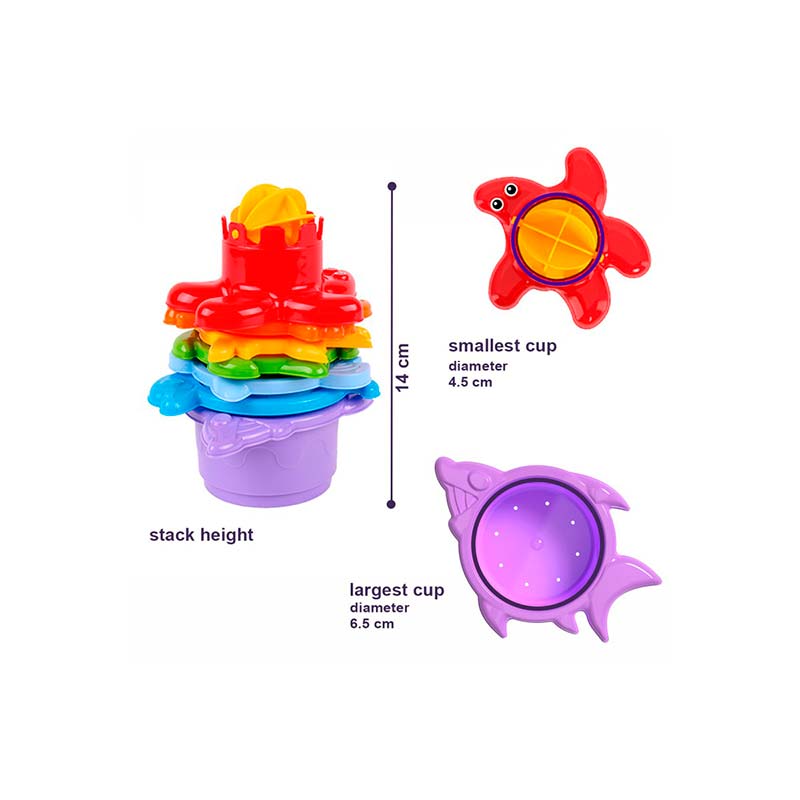 Та окрім розваг, ще й навчання. Збудувати і зруйнувати піраміду, вивчити кольори, розміри, форми, познайомитись з морськими жителями, та зробити перші кроки у лічбі. А ще безліч ідей, які придумає Ваш малюк. Адже така іграшка добре розвиває дрібну моторику, координацію, пам'ять, логіку та уяву.