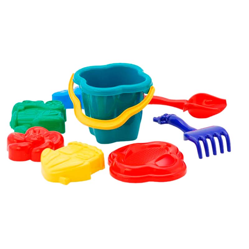 відерко, сито, лопатка, граблі, 4 пасочки |