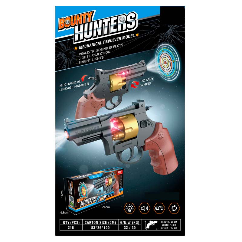 Світлові ефекти: Пістолет оснащений світлодіодами, які створюють яскраві візуальні ефекти під час гри, додаючи ще більше емоцій.