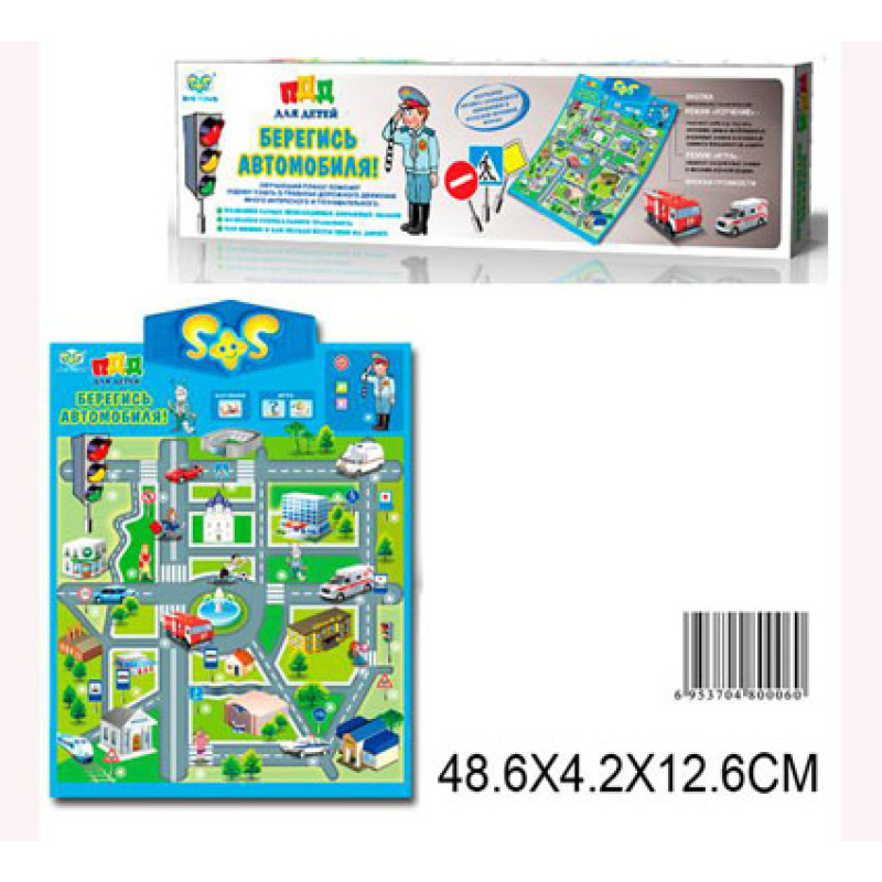 Плакат навчальний "Бережись автомобіля" батарейках, російська мова, 49*13*4см.