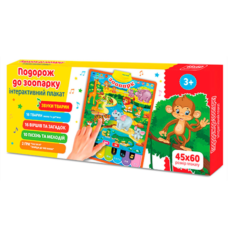 Плакат навчальний "Зоопарк" укр, на батарейках у коробці 46,5х3х21,5 см