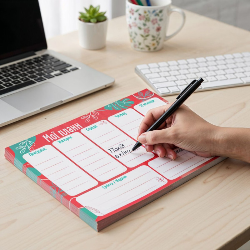 Зручний тижневий планер від Vladi Toys - це компактний та стильний помічник для організації навчання, роботи й особистих справ. Формат 20×14,3 см ідеально підходить для рюкзака, сумки або робочого столу, а україномовне наповнення робить планування максимально комфортним.