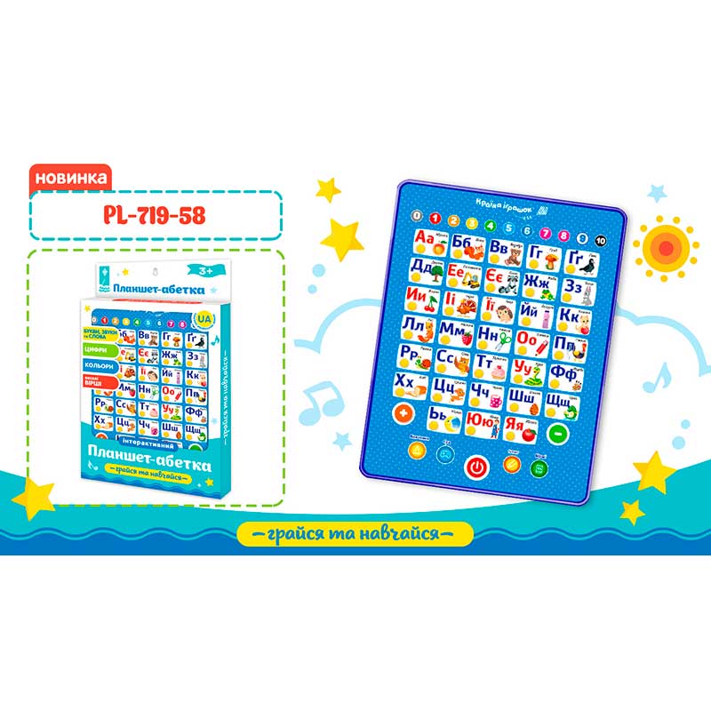 Планшет "Абетка" батар на укр навчання букви кольори рахунок в кор.19 PL-719-58