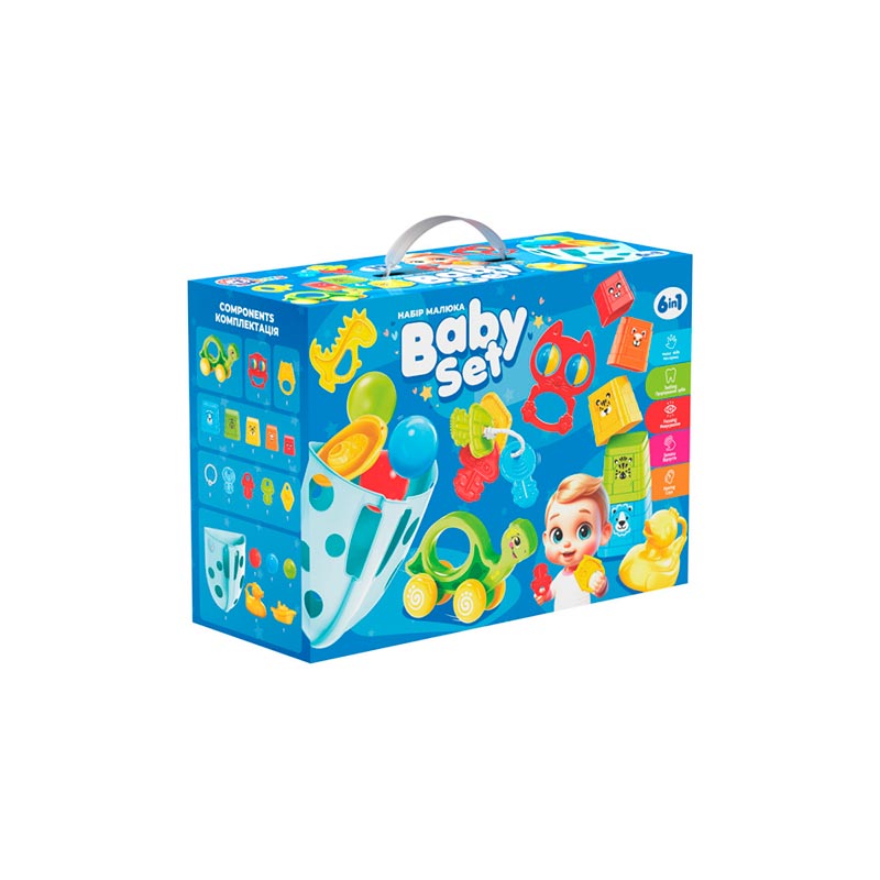 Вибір перших іграшок — це відповідальна місія для батьків. Ми спростили її для вас! "Подарунковий набір ТехноК" — це ідеальний бокс, який закриває всі потреби дитини у віці від 6 місяців до 2 років.