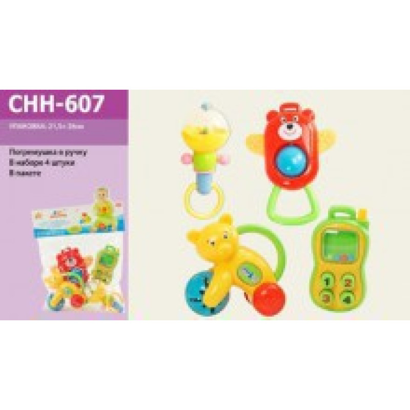 Брязкальце в ручку в наборі 4 шт у пакеті 22 см CHH-607