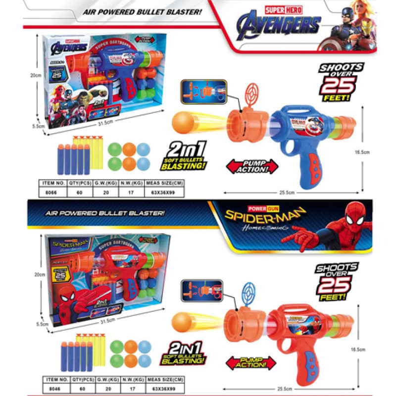Помпова зброя супергерої з кульками 2 види 2 кольори в коробці 8046/8066