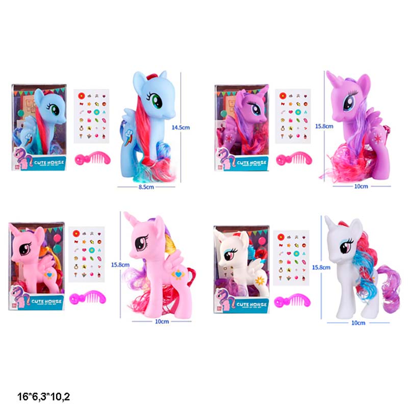 Аксесуари: У комплект входять різноманітні аксесуари, які дозволяють змінювати образ поні та додавати елементи декору.