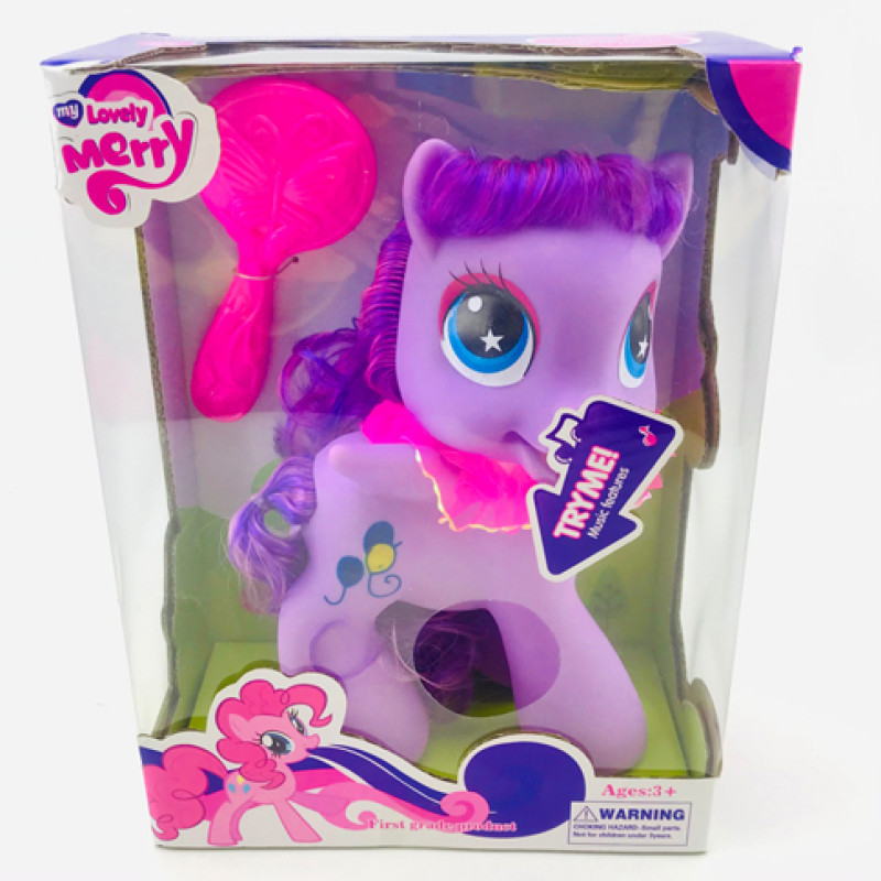 Поні - милий поні обов'язково сподобається будь-якій дівчині! Іграшка дуже красива, має яскраве рожеве забарвлення, красиву гриву і хвіст, які можна розчісувати мініатюрним гребінцем. Якщо натиснути на ліву ніжку, то пролунає веселе іржання і цокіт копит, а після цього прозвучить мелодія. Все це супроводжується ще й яскравим мерехтінням у ділянці голови поні. Іграшка виконана з високоякісних полімерних матеріалів. Володіє світловими і звуковими ефектами. Довжина: 17 см. Висота: 24 см. Товщина: 9 см.